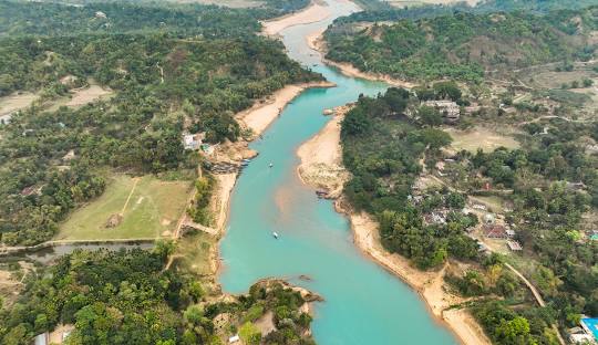 Lalakhal is a river channel in the Jaintiapur area of Sylhet, Bangladesh, known for its strikingly blue, green, and clear waters. A popular tourist destination, it offers scenic boat rides, views of nearby hills, and surrounding tea gardens.