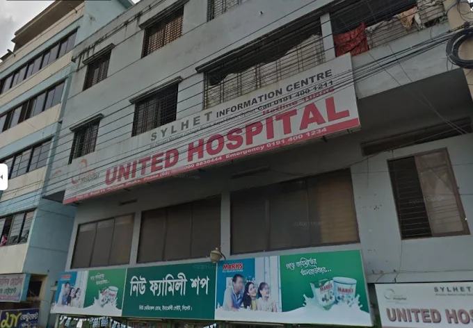 United Hospital Sylhet appears to be an information center and not a full hospital facility. It is a branch of United Hospital, a private hospital headquartered in Dhaka.